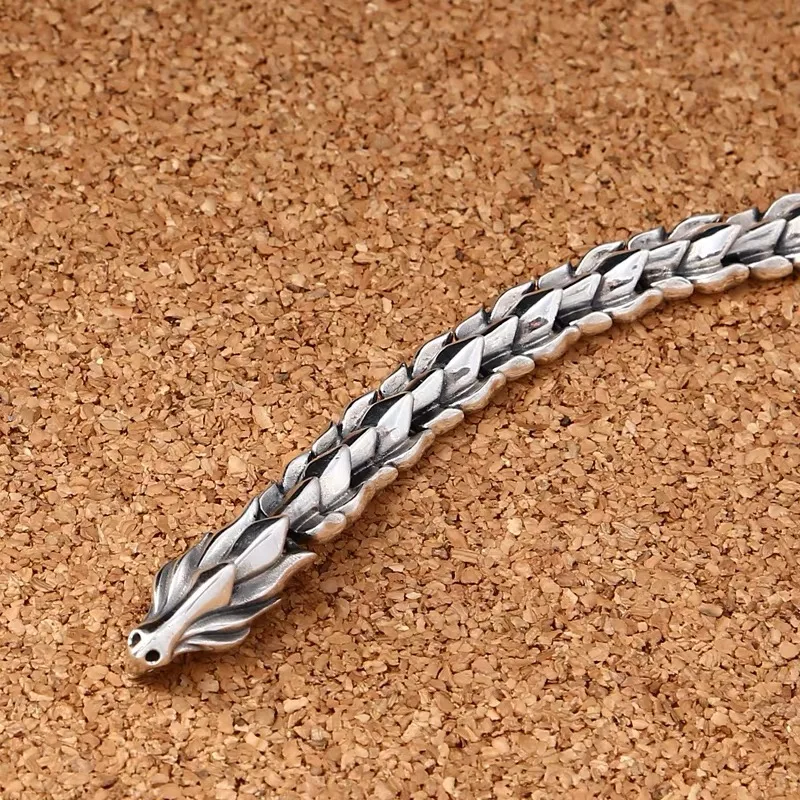 12mm Breite Echt Silber Retro Klassische Drachen Links Armbänder Für Mann Männlichen S925 Sterling Silber Vintage Armband Edlen Schmuck