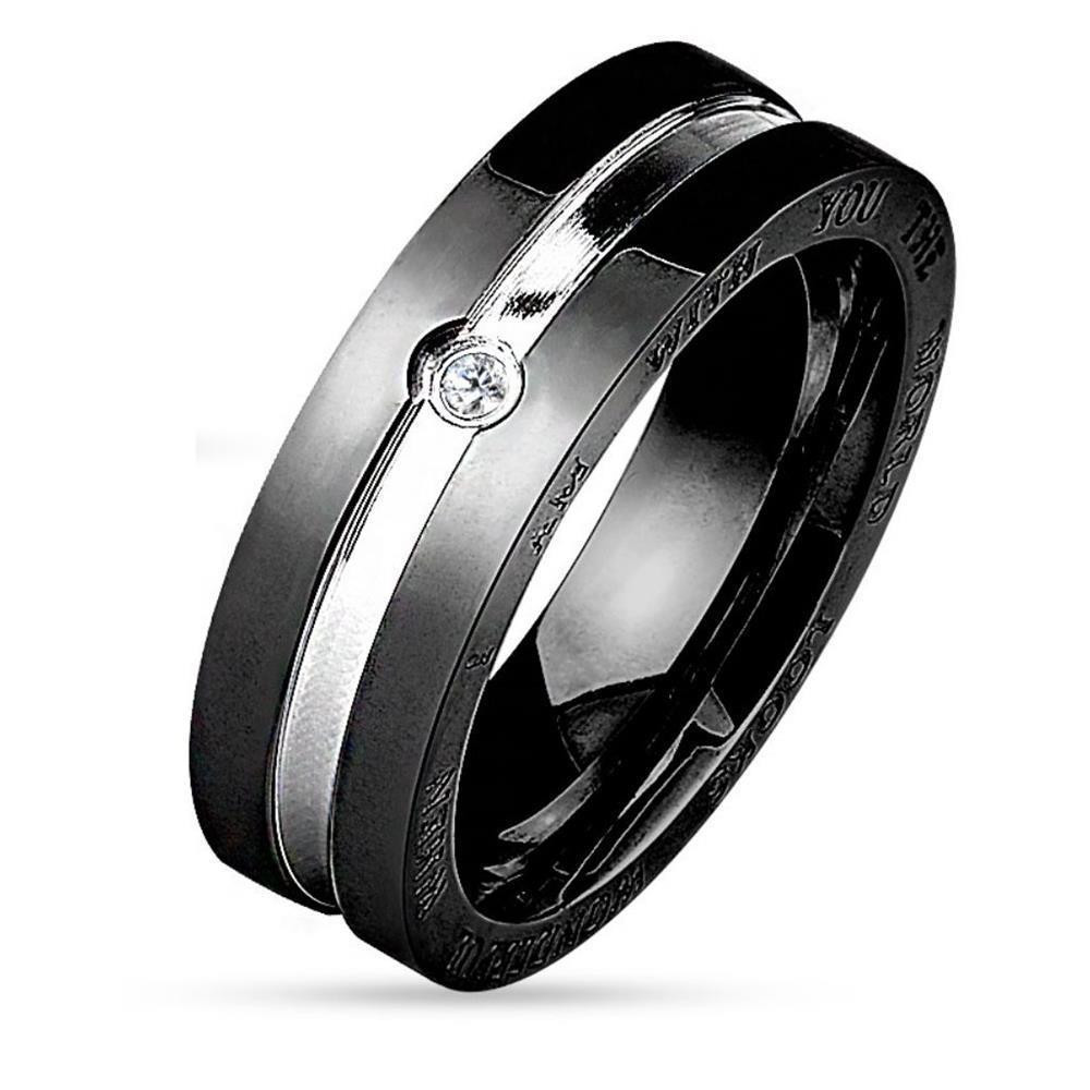 Verlobungs- / Paaringe mit der Gravur „When I am with you the world looks wonderful“- fuer Damen in zartem roségold-silber und fuer Herren im edlen schwarz-silber – Klassisches Partnerringe Set fuer Frauen & Maenner