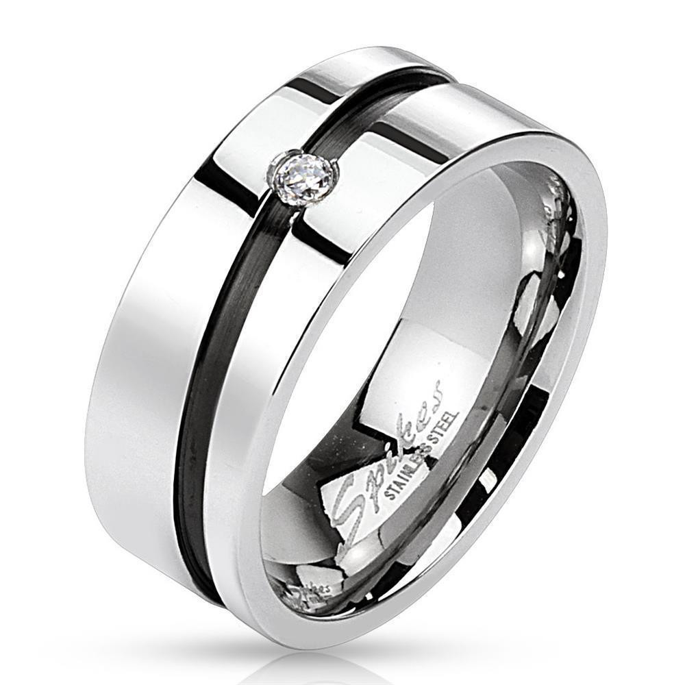62 (19.7) Edelstahl Kristall Ring mit diagonal schwarzem Mittelring silber hochglanzpoliert Damen…