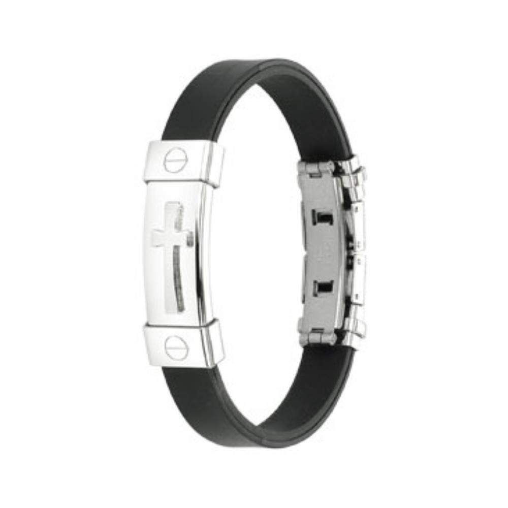 Armband mit silbernem Kreuz Schwarz aus Edelstahl Unisex