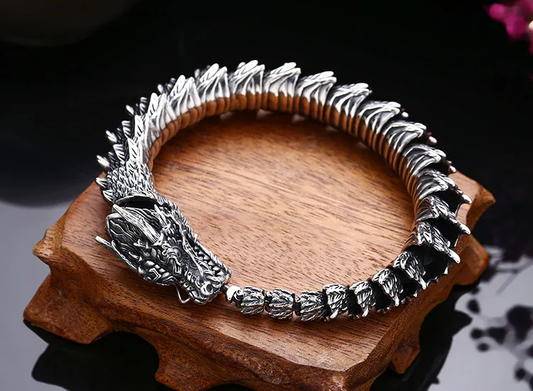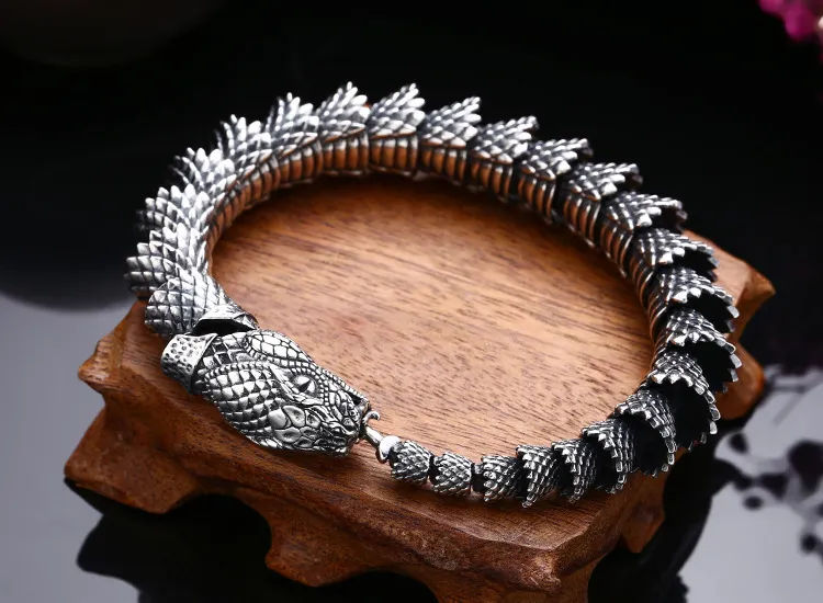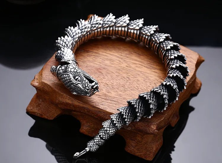 BOCAI Neue 100% S925 Silber Herrschsüchtige männer Armband Dicken Drachen Python Trendy Persönlichkeit Vintage-Schmuck Zubehör