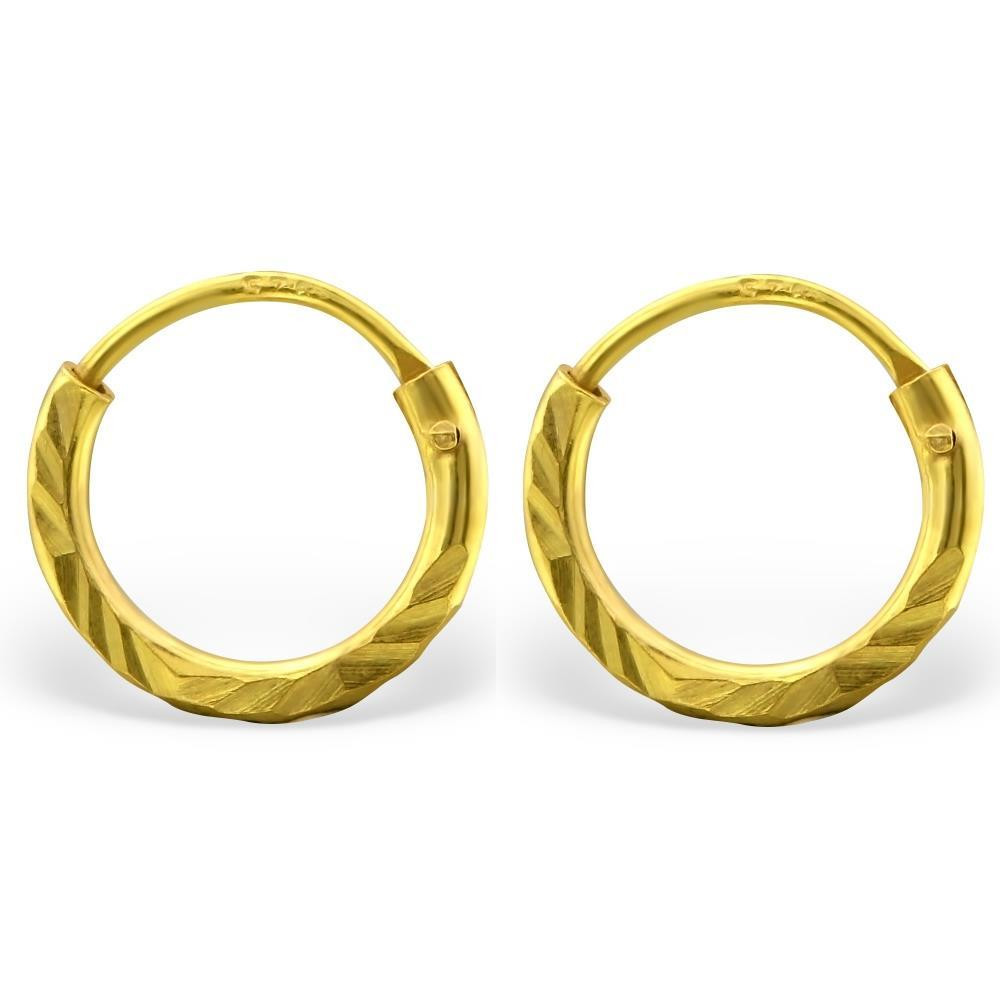 Silberne Creolen Ohrringe mit sand-gestrahltem Mittelteil und Goldrand