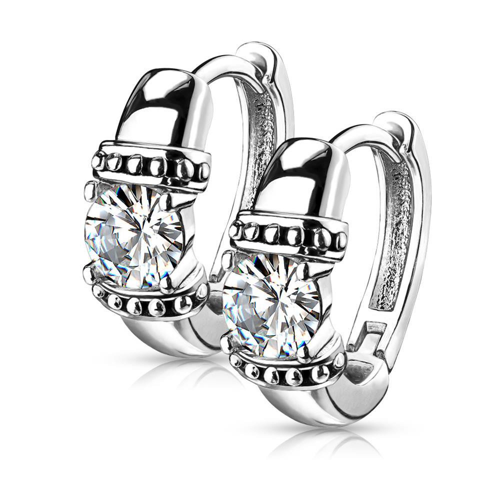 Klapp-Creolen mit strahlendem Zirkonia und geschwaerzten Ornamenten – Hochwertiger Edelstahl Ohrschmuck fuer Damen und Herren