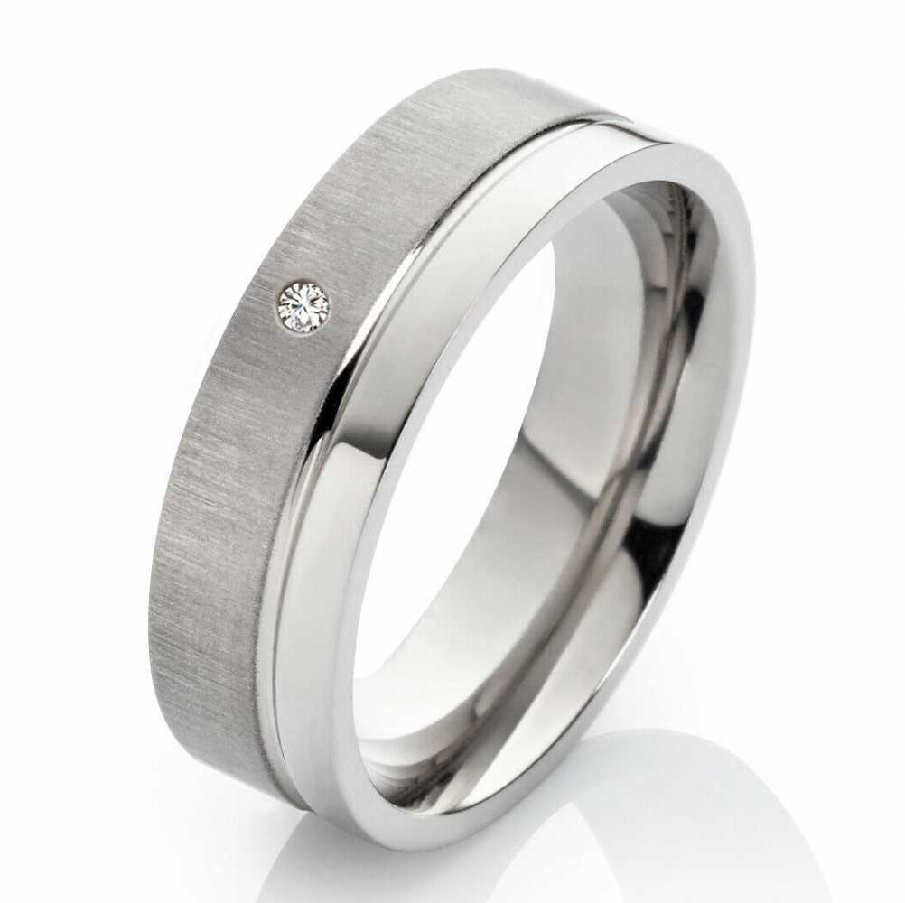 Zauberhafter gravierbarer Damenring aus Titan mit Stein Dieser massive Einzelring aus Titan ist auf der Aussenseite poliert und mattiert. Ebenso verziert wird diese Flaeche durch eine Glanzrille auf dem Ring. Den Stein auf dem Ring kann man selbst bestimmen. Hier kann entweder ein runder Diamant mit einer Groesse von 0,02 ct W/SI gewaehlt werden, oder ein runder Zirkonia mit einer Groesse von 2,0 mm. Beide funkeln ganz wunderbar und sind das Sahnestueck dieses Ringes. Man kann ihn als Freundschaftsring tragen oder auch als Verlobungs- oder Ehering. Als Zeichen der Liebe oder Freundschaft kann auf der polierten und bombierten Innenflaeche eine gratis Gravur mittels eines Lasers angebracht werden. Die Formulierung wird persoenlich auf den Traeger und die Traegerin abgestimmt. Fuer diese Botschaft stehen sieben Schriftarten und 30 Zeichen zur Verfuegung. Der Damenring ist 6,0 mm oder 8,0 mm breit. Er wird in einem passenden gratis Etui verschickt. Die Versandkosten innerhalb von Deutschland sind im Angebot enthalten. Ringmodell: DT007 Marke: Rings-and-More Ringmaterial: Titan Ringmaterial: massiv Ringbreite Dame: ca. 6mm oder 8mm Steinbesatz im Damenring : Zirkonia oder Diamant Steingroesse: ca.2mm oder 0,02ct W/Si Oberflaeche: mattiert und poliert Oberflaeche innen: bombiert (abgerundet) Innen: poliert Damenringgroessen: 47 bis 72mm (nur in 2er Schritten verfuegbar) Lieferumfang : 1x Damenring und gratis Etui