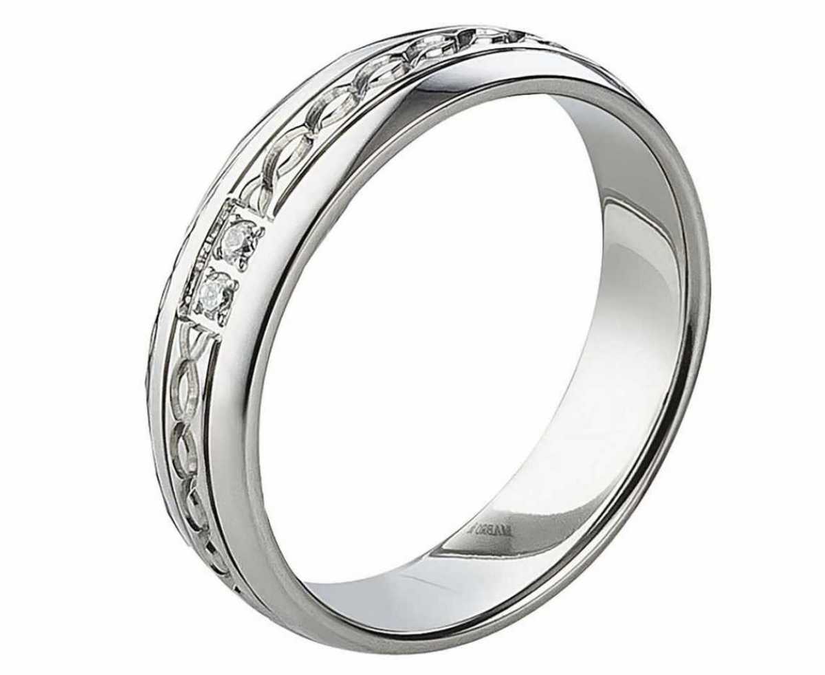 Damenring mit Muster und Zirkonias aus Edelstahl Ringmodell: AB1016 Marke: Mabro Ringmaterial: Edelstahl Ringmaterial massiv: JA Ringbreite Dame: ca. 5,0 mm Steinbesatz im Damenring: Zirkonia Steinform: rund Steinanzahl: 2 Steingroesse: ca.1,5mm Oberflaeche: Poliert Oberflaeche innen: Poliert Innen: bombiert (abgerundet) Damenringgroessen: 50 bis 62mm (nur in 2er Schritten verfuegbar) Lieferumfang: 1x Damenring und gratis Etui Â