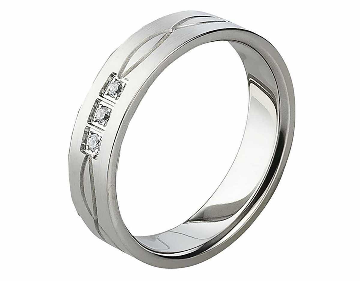 Moderne Damenring Edelstahl AB1022 Ringmodell: AB1022 Marke: Mabro Ringmaterial: Edelstahl Ringmaterial massiv: JA Ringbreite Dame: ca. 5,0 mm Steinbesatz im Damenring: Zirkonia Steinform: rund Steinanzahl: 3 Steingroesse: ca.1,5mm Oberflaeche: Gebuerstet Oberflaeche innen: Poliert Innen: bombiert (abgerundet) Damenringgroessen: 50 bis 62mm (nur in 2er Schritten verfuegbar) Lieferumfang: 1x Damenring und gratis Etui Â