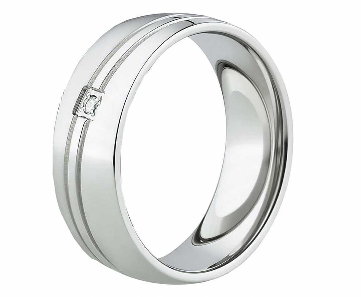 Ringmodell: AB1130 Marke: Mabro Ringmaterial: Edelstahl Ringmaterial massiv: JA Ringbreite Dame: ca. 7,2 mm Steinbesatz im Damenring: Zirkonia Steinform: rund Steinanzahl: 1 Steingroesse: ca.2 mm Oberflaeche: Gebuerstet und Poliert Oberflaeche innen: Poliert Innen: bombiert (abgerundet) Damenringgroessen: 50 bis 62mm (nur in 2er Schritten verfuegbar) Lieferumfang: 1x Damenring und gratis Etui Â