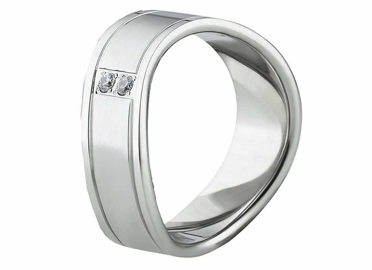 Ringmodell: AB1138 Marke: Mabro Ringmaterial: Edelstahl Ringmaterial massiv: JA Ringbreite Dame: ca. 6,5mm Steinbesatz im Damenring: Zirkonia Steinform: rund Steinanzahl: 2 Steingroesse: ca.1,5mm Oberflaeche: Gebuerstet und Poliert Oberflaeche innen: Poliert Innen: bombiert (abgerundet) Damenringgroessen: 50 bis 62mm (nur in 2er Schritten verfuegbar) Lieferumfang: 1x Damenring und gratis Etui Â