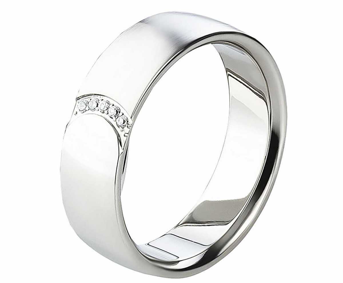 Ringmodell: AB1568 Marke: Mabro Ringmaterial: Edelstahl Ringmaterial massiv: JA Ringbreite Dame: ca. 6,0 mm Steinbesatz im Damenring: Zirkonia Steinform: rund Steinanzahl: 5 Steingroesse: ca.1,5mm Oberflaeche: Gebuerstet und Poliert Oberflaeche innen: Poliert Innen: bombiert (abgerundet) Damenringgroessen: 50 bis 62mm (nur in 2er Schritten verfuegbar) Lieferumfang: 1x Damenring und gratis Etui