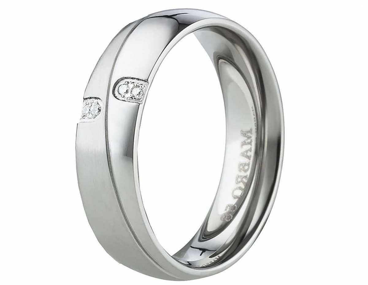 Ringmodell: AB2008 Marke: Mabro Ringmaterial: Edelstahl Ringmaterial massiv: JA Ringbreite Dame: ca. 6,0 mm Steinbesatz im Damenring: Zirkonia Steinform: rund Steinanzahl: 4 Steingroesse: ca. 1,5mm Oberflaeche: Gebuerstet und Poliert Oberflaeche innen: Poliert Innen: bombiert (abgerundet) Damenringgroessen: 50 bis 62mm (nur in 2er Schritten verfuegbar) Lieferumfang: 1x Damenring und gratis Etui Â
