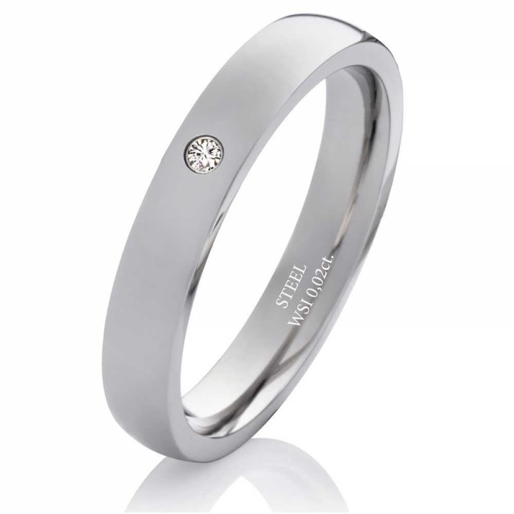 Ringmodell: DE130 Marke: Rings-and-More Ringmaterial: Edelstahl Ringmaterial massiv: JA Ringbreite Dame: ca. 4,5mm Steinbesatz im Damenring: Zirkonia oder Diamant Steinform: rund Steinanzahl: 1 Steingroesse: ca.1,5mm Oberflaeche: Poliert Oberflaeche innen: Poliert Innen: bombiert (abgerundet) Damenringgroessen: 48 bis 72mm (nur in 2er Schritten verfuegbar) Lieferumfang: 1x Damenring und gratis Etui Â