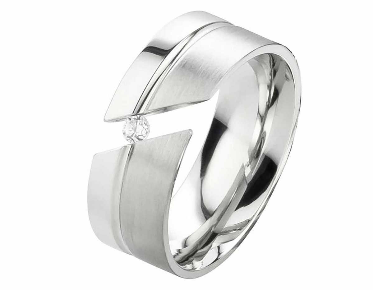 Ringmodell: DE138 Marke: Rings-and-More Ringmaterial: Edelstahl Ringmaterial massiv: JA Ringbreite Dame: ca. 8,0 mm Steinbesatz im Damenring: Zirkonia Steinform: rund Steinanzahl: 1 Steingroesse: ca.2,5mm Oberflaeche: Gebuerstet und Poliert Oberflaeche innen: Poliert Innen: bombiert (abgerundet) Damenringgroessen: 47 bis 72mm (nur in 2er Schritten verfuegbar) Lieferumfang: 1x Damenring und gratis Etui Â