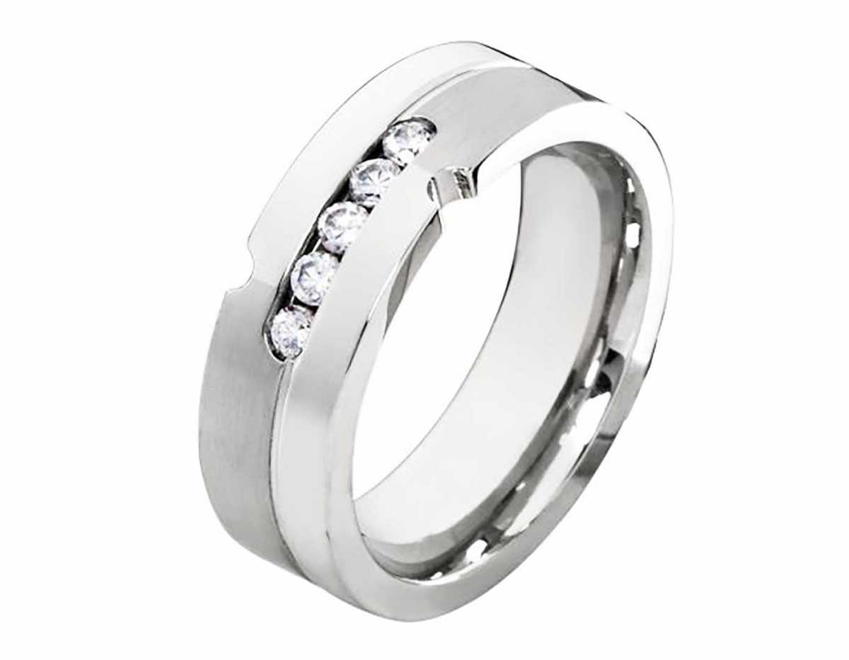 Ringmodell: DE148 Marke: Rings-and-More Ringmaterial: Edelstahl Ringmaterial massiv: JA Ringbreite Dame: ca. 6,0 mm Steinbesatz im Damenring: Zirkonia Steinform: rund Steinanzahl: Steingroesse: ca.2mm 5 Stueck Oberflaeche: Gebuerstet und Poliert Oberflaeche innen: Poliert Innen: bombiert (abgerundet) Damenringgroessen: 50 bis 58mm (nur in 2er Schritten verfuegbar) Lieferumfang: 1x Damenring und gratis Etui Â