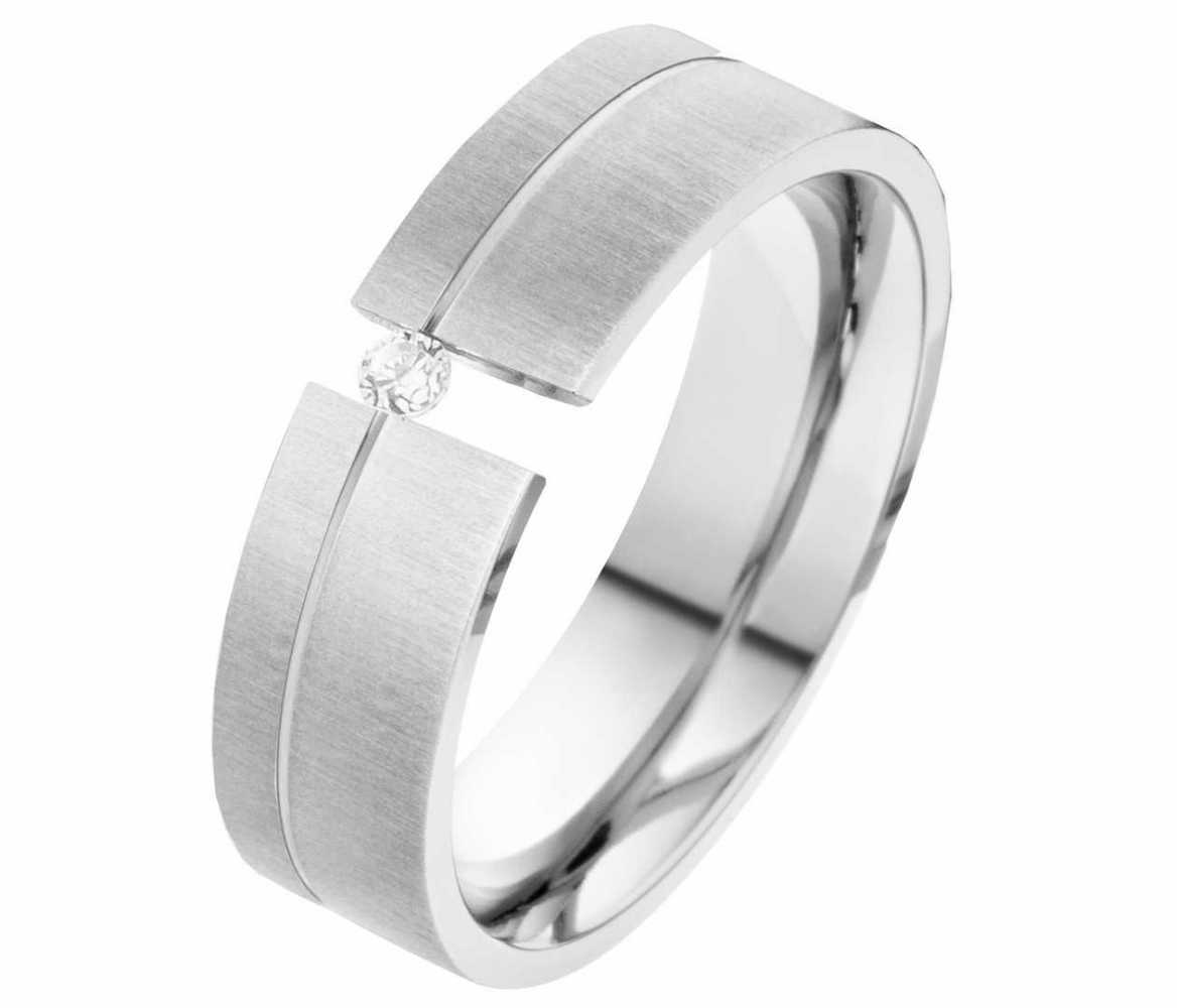 Damenring Spannring aus Edelstahl DE216 mit Gravur – Etui Ringmodell: DE216 Marke: Rings-and-More Ringmaterial: Edelstahl Ringmaterial massiv: JA Ringbreite Dame: ca. 6,0 mm Steinbesatz im Damenring: Zirkonia Steinform: rund Steinanzahl: 1 Steingroesse: ca.2,5mm Oberflaeche: Poliert und Gebuerstet Oberflaeche innen: Poliert Innen: bombiert (abgerundet) Damenringgroessen: 47 bis 72mm (nur in 2er Schritten verfuegbar) Lieferumfang: 1x Damenring und gratis Etui Â