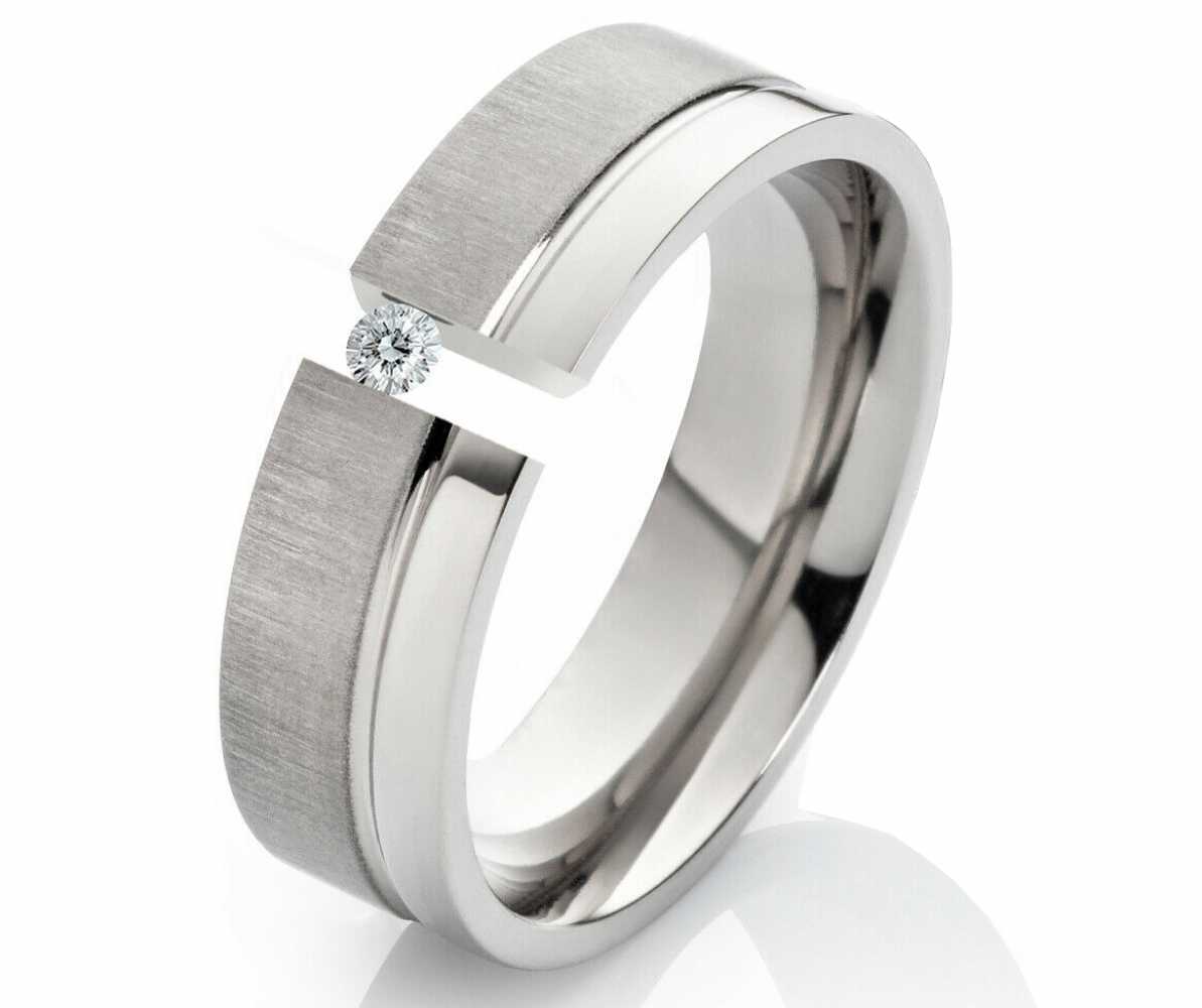 Spektakulaerr Damenring aus Titan mit Stein und passender Gravur Bei diesen Damenring aus Tiatn koennen Sie nicht verkehrt machen. Der Ring hat eine Spannfassung. Es ist ein runden Zirkonia mit der Groesse 2,5mm in der Spannfassung eingespannt. Der Damenring ist 6mm oder 8mm breit und auf der Oberflaeche aussen mattiert und poliert. Als weiteres Zeichen der Verbundenheit koennen Sie auf der Innenflaeche mittels verschiedenen Schriftarten und 30 Zeichen eine Liebesbotschaft fuer Ihre Partnerin oder Ihren Partner anbringen lassen. Die Versandkosten und ein edles Etui sind im Angebot inklusive. Die Innenflaeche ist poliert. Ringmodell: DT031 Marke: Rings-and-More Ringmaterial: Titan Ringmaterial: massiv Ringbreite Dame: ca. 6mm oder 8mm Steinbesatz im Damenring : Zirkonia Steingroesse: ca.2,5mm Oberflaeche: mattiert und poliert Oberflaeche innen: bombiert (abgerundet) Innen: poliert Damenringgroessen: 50 bis 72mm (nur in 2er Schritten verfuegbar) Lieferumfang : 1x Damenring und gratis Etui