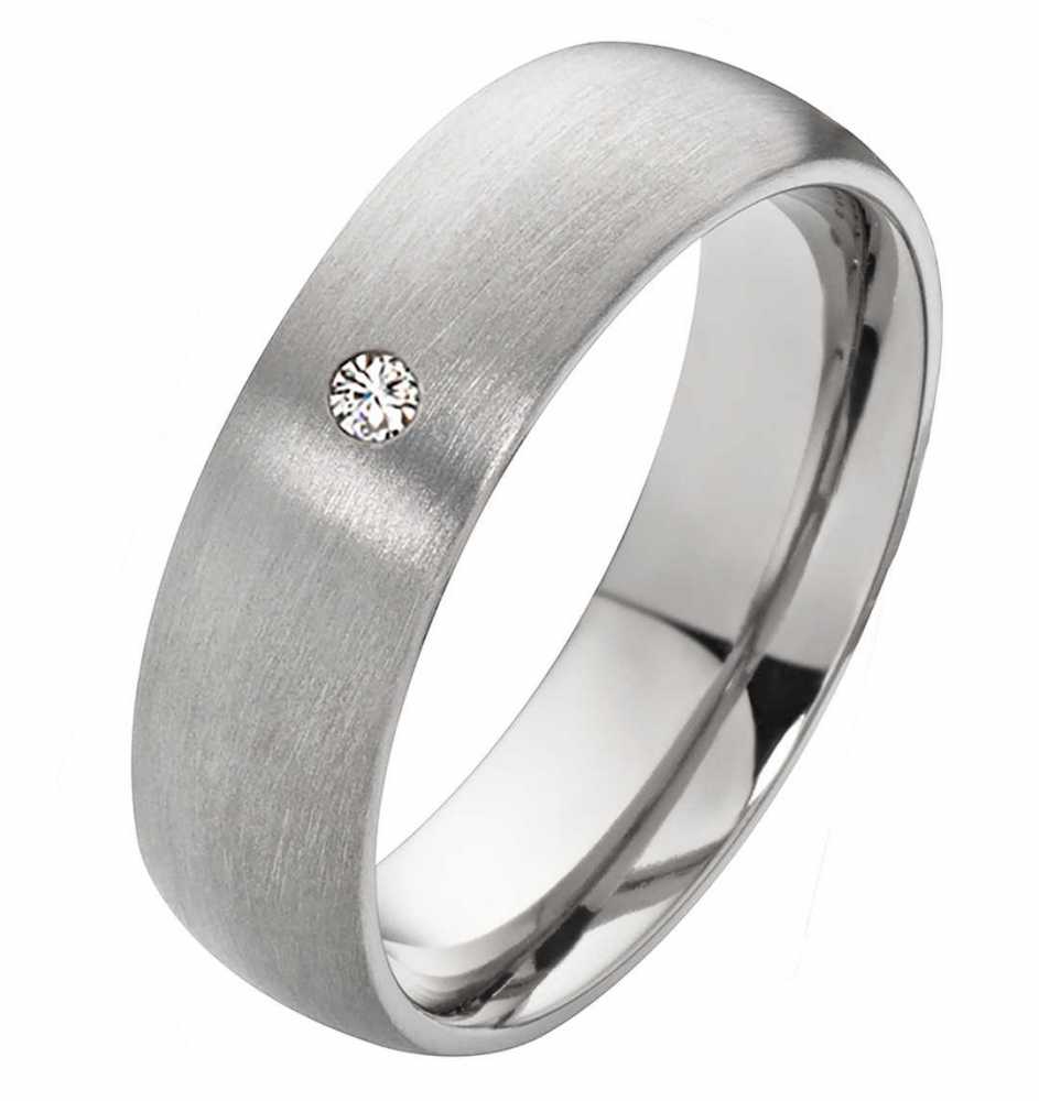 Zeitlos schoener gravierbarer Damenring aus Titan mit weissem Zirkonia Dieser gravierbare Einzelring aus Titan ist sehr dekorativ. Der Ring hat eine Breite von 6,0 mm und ist auf der Oberflaeche aussen wunderschoen mattiert. Der Damenring ist zusaetzlich mit einem funkelnden Zirkonia veredelt. Der Stein ist weiss und rund und hat eine Groesse von ca. 1,5 mm. Getragen werden kann dieser edle Titanring fuer viele Anlaesse. Unter anderem als Verlobungs- oder Trauring. Durch einen Laser wird die gratis Gravur auf der polierten Innenseite angebracht. Diese kann ganz persoenlich und individuell formuliert werden. Mit Hilfe von sieben Schriftarten und 30 Zeichen findet man auf jeden Fall die treffenden Worte der Liebe und Verbundenheit. Geliefert wird dieser Ring in einem schwarzen Etui. Versandkosten innerhalb von ganz Deutschland fallen keine an. Ringmodell: DT047 Marke: Rings-and-More Ringmaterial: Titan Ringmaterial: massiv Ringbreite Dame: ca. 6mm Steinbesatz im Damenring : Zirkonia Steingroesse: ca.1,5mm Oberflaeche: mattiert Oberflaeche innen: bombiert (abgerundet) Innen: poliert Damenringgroessen: 50 bis 72mm (nur in 2er Schritten verfuegbar) Lieferumfang : 1x Damenring und gratis Etui