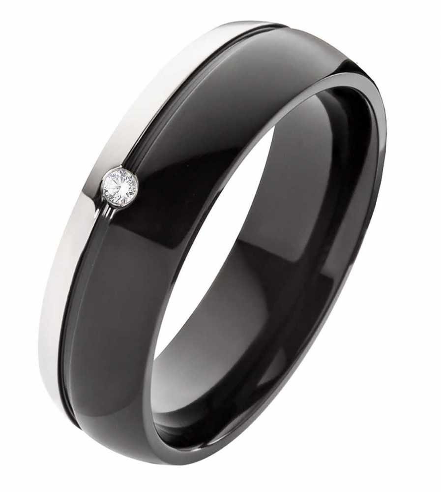 Eindrucksvoller Titanringe mit schwarzer Beschichtung Dieser Damenring aus Titan ist beide 6mm breit. Die Oberflaeche aussen ist mattiert und poliert und die gravierbare Innenseite ist Hochglanz poliert. Dieser Damenring besicht vor allem durch den wunderschoenen schwarzen Beschichtung ins Auge. Darin eingespannt ist ein einmalig schoener runder Zirkonia oder Diamant. Der Stein hat eine Groesse beim Zirkonia von von 1,5mm oder beim Diamant 0,01ct. Die Oberflaeche ist zusaetzlich noch durch eine Glanzrille veredelt. Um die Verbundenheit des Traegers in Worten auszudruecken, kann man auf der Innenseite, die poliert und abgerundet ist, eine gratis Gravur anbringen lassen. Dafuer stehen verschiedene Schriftarten zur Verfuegung. Diese versteckte Nachricht wird mit einem Laser angebracht und kann bis zu 30 Zeichen beinhalten. Damit dieser zauberhafte Titanring immer gut aufbewahrt werden koennen, wird ein edles gratis Etui mitgeschickt. Die Versandkosten innerhalb von Deutschland sind inklusive. Ringmodell: DT166 Marke: Rings-and-More Ringmaterial: Titan Ringmaterial: massiv Ringbreite Dame: ca. 6mm Steinbesatz im Damenring: Zirkonia oder Diamant Steingroesse: ca.1,5mm oder 0,01ct W/Si Oberflaeche: poliert und Beschichtet Oberflaeche innen: bombiert (abgerundet) Innen: poliert Damenringgroessen: 50 bis 68mm (nur in 2er Schritten verfuegbar) Lieferumfang : 1x Damenring und gratis Etui