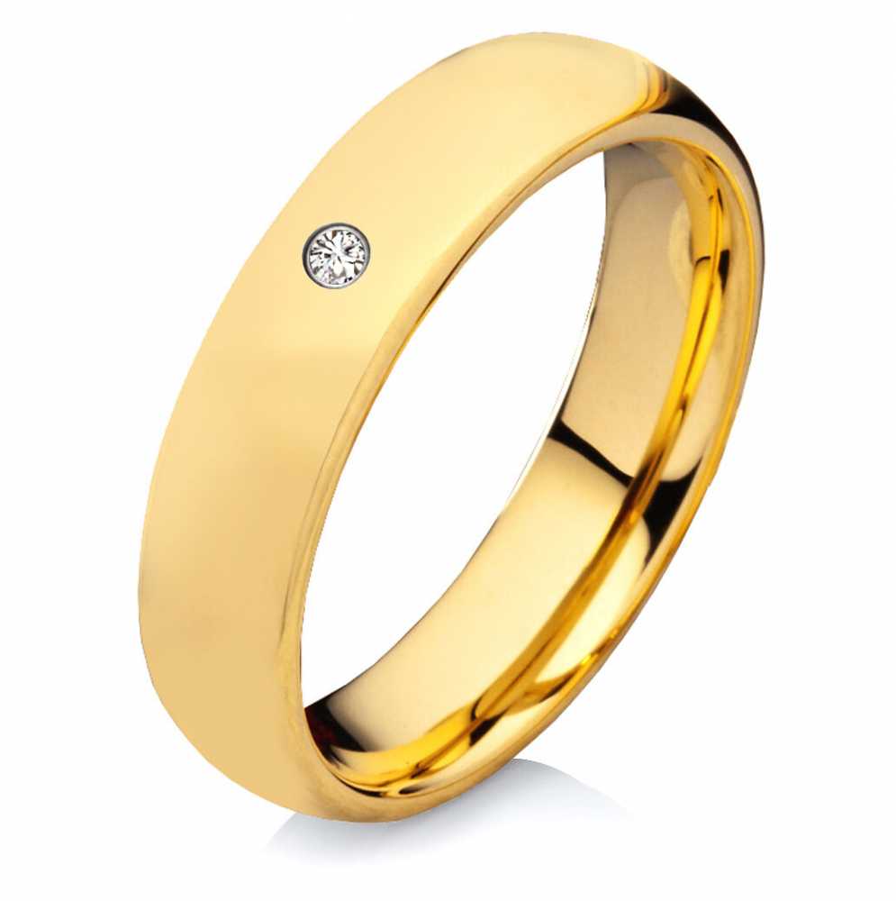 Zauberhafter beschichteter Wolframring fuer die Dame mit Zirkonia Dieser Damenring aus Wolfram hat auf der goldfarbige beschichteten Oberflaeche aussen einen wunderschoen funkelnden runden Zirkonia eingefasst. Die Groesse des Steines betraegt 2mm. Die Aussen- und die Innenseite sind poliert. Fuer einen angenehmen Tragekomfort ist die Flaeche innen extra abgerundet. Der Wolframring hat eine Breite von 5mm und auf der komplett goldfarbigen beschichteten Innenflaeche findet noch eine gratis Gravur ihren Platz. Fuer diese persoenliche Nachricht kann man Mittels 30 Zeichen und sieben Schriftarten die treffenden Worte fuer die Traegerin finden. Der Lieferumfang beinhaltet ein edles schwarzes gratis Etui, in dem der Ring zugeschickt wird. Im Angebot enthalten sind die Kosten fuer den Versand innerhalb von ganz Deutschland. Ringmodell: W755D Marke: Rings-and-More Ringmaterial : Wolfram Ringmaterial: massiv Ringbreite Dame: ca. 5mm Oberflaeche: Poliert Beschichtung: PVD Oberflaeche innen : poliert Innen : bombiert (abgerundet) Herrenringgroessen: 50 bis 58mm (nur in 2er Schritten verfuegbar) Lieferumfang : 1x Damenring und gratis Etui