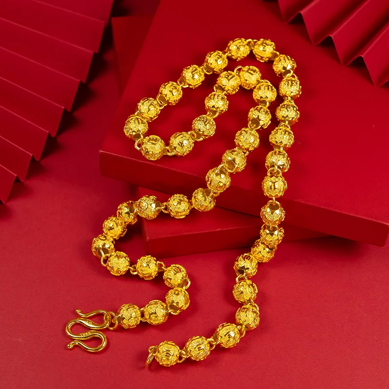 Echte 24 Karat Gold Oliven perle hohle Halsketten für Männer Frauen Luxus Sand Gold Anhänger Kette Schmuck Hochzeit Geburtstags geschenke