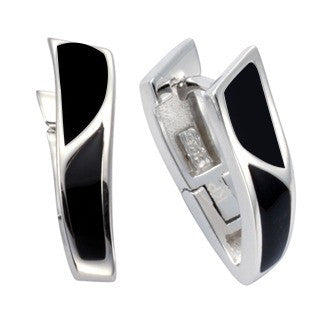 Elegante Klappcreolen Ohrringe aus 925-/ Sterling Silber rhodiniert. Mit schwarzer Lackbeschichtung. Hochwertige Verarbeitung. Faszinierendes Design für jeden Anlass. Das ideale Geschenk für besondere Anlässe.