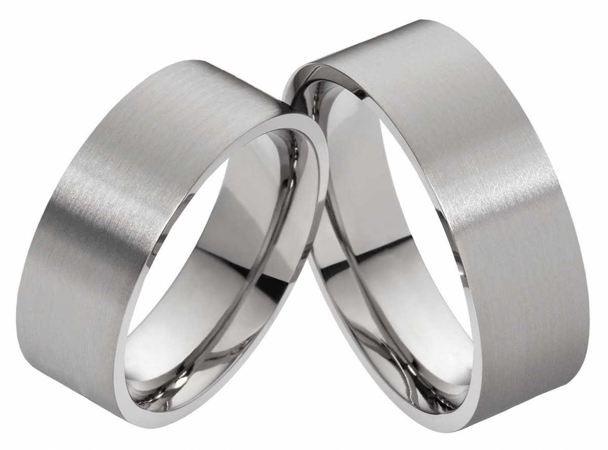 Edelstahlringe mit persoenlicher Widmung Diese auffaelligen Ringe, mit einer Breite von 10mm, sind mit der Mattierten Oberflaeche sehr wirkungsvoll. Sie sind innen Poliert und haben eine abgerunderte Flaeche. Diese sorgt fuer einen angenehmen Tragekomfort und kann auf Wunsch auch graviert werden. Es sind bis zu 30 Zeichen moeglich. Zum Beispiel koennen Namen oder ein Datum eingraviert werden oder auch eine persoenliche Widmung. Die Ringe werden mit einem kostenlosem Etui versendet. Der Versand innerhalb von Deutschland ist frei. Diese Ringe koennen als Partnerringe, Verlobungsringe, Freundschaftsringe oder auch als Eheringe getragen werden. Ringmodell: E103 Marke: Rings-and-More Ringmaterial: Edelstahl Ringmaterial massiv: JA Ringbreite Dame: ca. 10mm Ringbreite Herr: ca. 10mm Oberflaeche: Mattiert Oberflaeche innen: Poliert Innen: bombiert (abgerundet) Damenringgroessen: 50 bis 72mm (nur in 2er Schritten verfuegbar) Herrenringgroessen: 50 bis 72mm (nur in 2er Schritten verfuegbar) Lieferumfang: 1x Paar (1x Damenring und 1 x Herrenring) und Etui