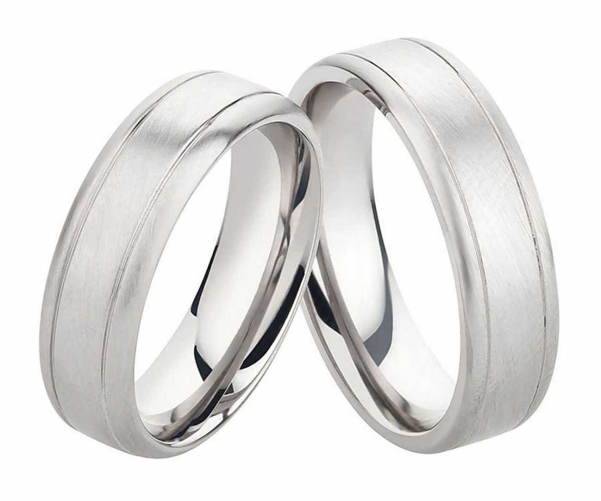 Edelstahlringe mit umlaufenden Glanzrillen Exklusiv Mattierte Edelstahlringe mit zwei umlaufenden Glanzrillen. Diese Ringe sind 6mm breit und haben eine Laengsmattierung. Der Preis ist fuer ein Paar inklusive Etui. Innerhalb Deutschland ist der Versand kostenlos. Was diese Ringe zu einem Zeichen Ihrer Verbundeheit macht, ist eine persoenliche, liebevolle Innengravur, welche 30 Zeichen beinhalten darf und in verschiedenen Schriftarten graviert werden kann. Tragen Sie diese Ringe als Partnerringe, Verlobungsringe, Freundschaftsringe oder auch als Eheringe. Ringmodell: E114 Marke: Rings-and-More Ringmaterial: Edelstahl Ringmaterial massiv: JA Ringbreite Dame: ca. 6mm Ringbreite Herr: ca. 6mm Oberflaeche: Mattiert Oberflaeche innen: Poliert Innen: bombiert (abgerundet) Damenringgroessen: 47 bis 72mm (nur in 2er Schritten verfuegbar) Herrenringgroessen: 47 bis 72mm (nur in 2er Schritten verfuegbar) Lieferumfang: 1x Paar (1x Damenring und 1 x Herrenring) und Etui