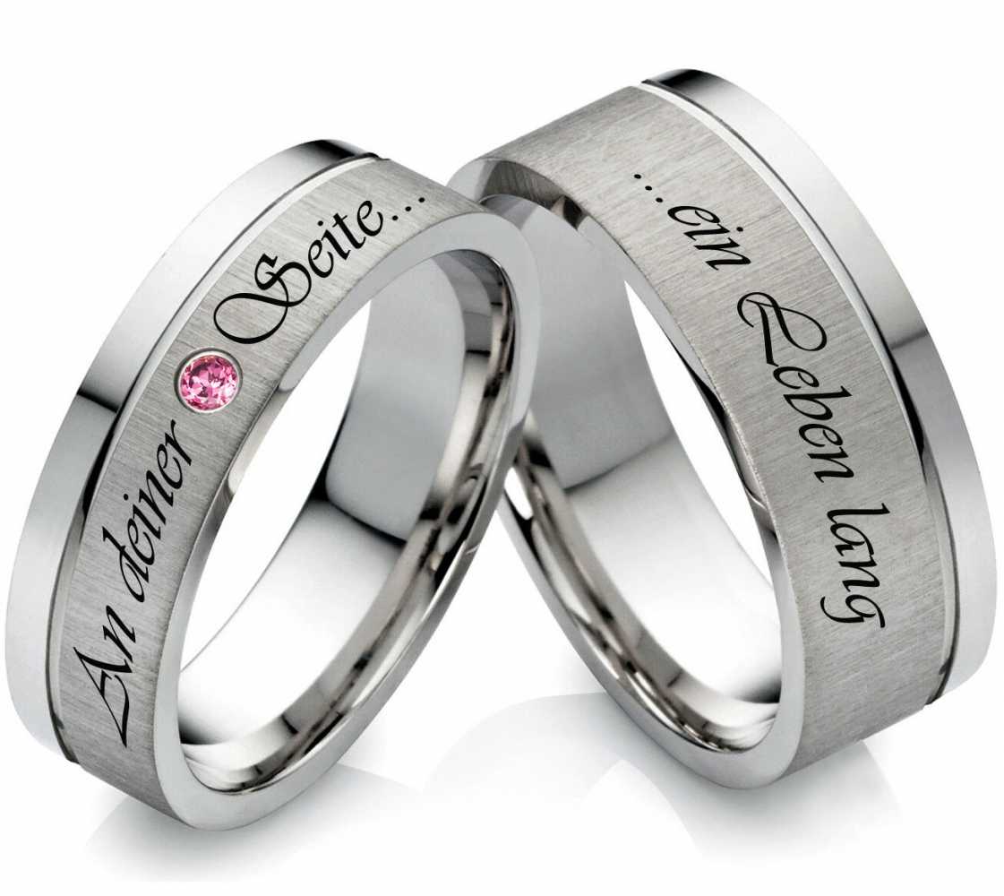 Stilvolle Partnerringe aus Edelstahl hochglanzpolierte und laengsmattierte Edelstahlringe aus dem Hause Rings-and-More. Im Damenring ist eine funkelnder Zirkonia Rot eingearbeitet und ist 6mm oder 8mm breit. Der Herrenring ist mit einer schoenen Glanzrille versehen und ist auch wahlweise 6mm oder 8mm. Die Ringe sind aussen gravierbar und runden das Design ab. Die angebotenen Edelstahlringe sind von Innen abgerundet und Poliert, wodurch sie sich sehr angenehm tragen lassen. Dieses Ring paar wird als Paar angeboten und beinhaltet einen Innen uns aussengravur sowie ein Etui. Diese Ringe koennen als Partnerringe, Verlobungsringe, Freundschaftsringe oder aber auch als Eheringe getragen werden. Ringmodell: Z123 Marke: Rings-and-More Ringmaterial: Edelstahl Ringmaterial massiv: JA Ringbreite Dame: ca. 6,0 oder 8mm Ringbreite Herr: ca. 6,0 oder 8mm Steinbesatz im Damenring: Zirkonia Rot Steinform: rund Steinanzahl: 1 Steingroesse: ca.1,5mm Oberflaeche: Gebuerstet und Poliert Oberflaeche innen: Poliert Innen: bombiert (abgerundet) Damenringgroessen: 47 bis 72mm (nur in 2er Schritten verfuegbar) Herrenringgroessen: 47 bis 72mm (nur in 2er Schritten verfuegbar) Lieferumfang: 1x Paar (1x Damenring und 1 x Herrenring) und Etui