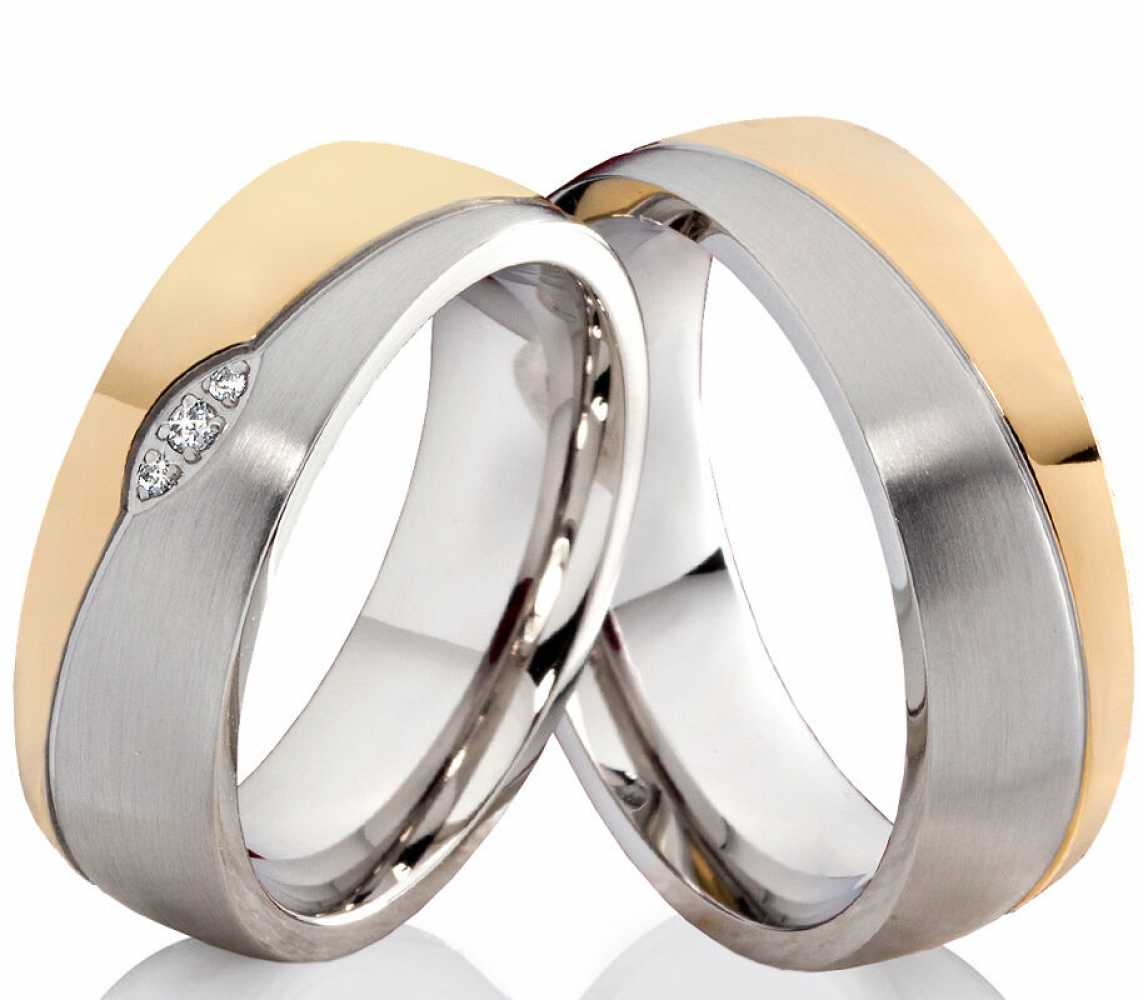Eheringe Edelstahlringe mit 3 Zirkonia Gravur P300