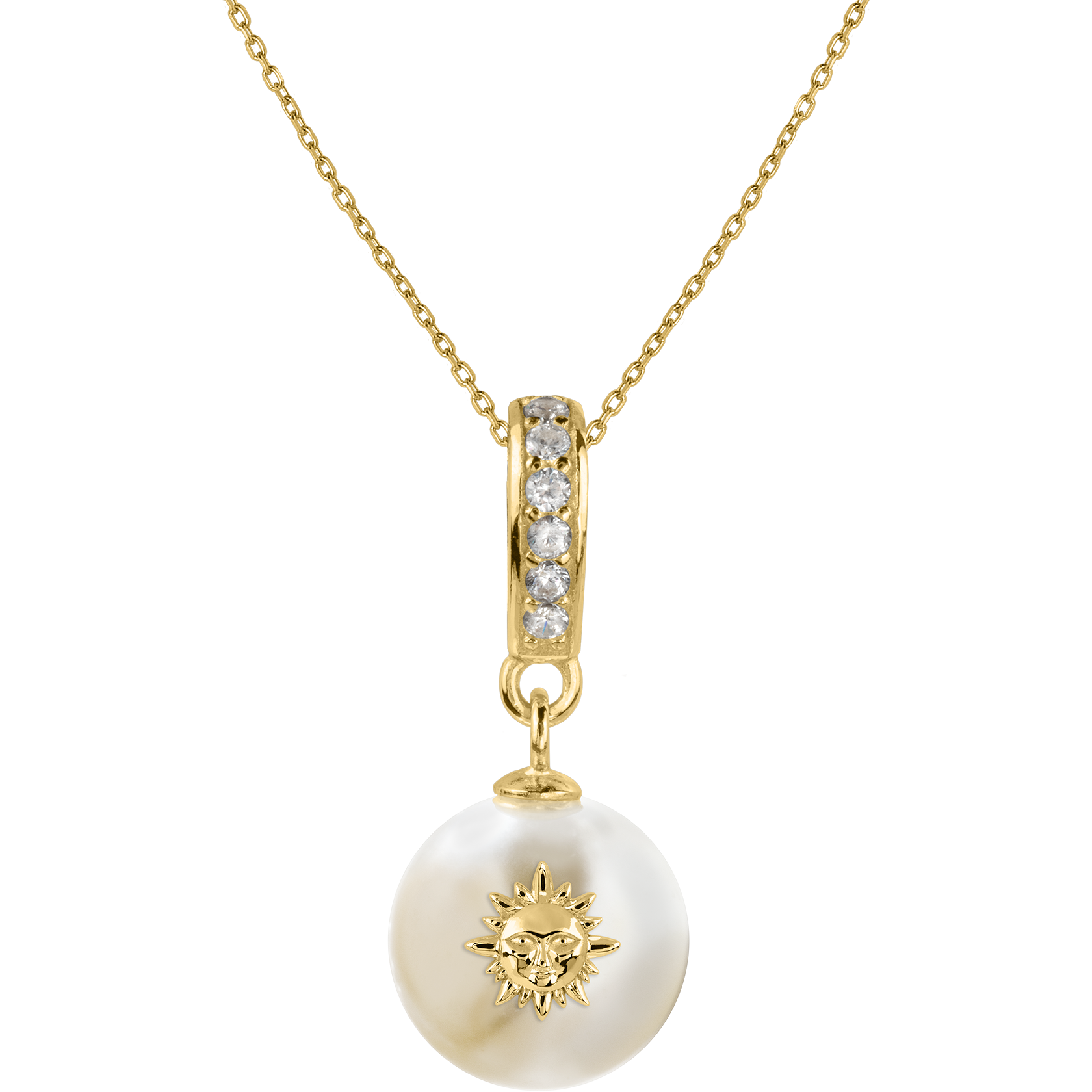 Die Halskette aus Sterlingsilber fasziniert mit ihrem aufwendig gearbeiteten Anhoe¤nger. Mit den funkelnden Edelsteinen verwandelt sich das vergoldete Schmuckstueck in einen strahlenden Hingucker. Die edle Perle mit dem verspielten Sonne-Symbol vollendet das moderne Design. Klassische Elemente kombiniert mit jugendlichen Details verleihen dieser Kette einen modischen Charakter.