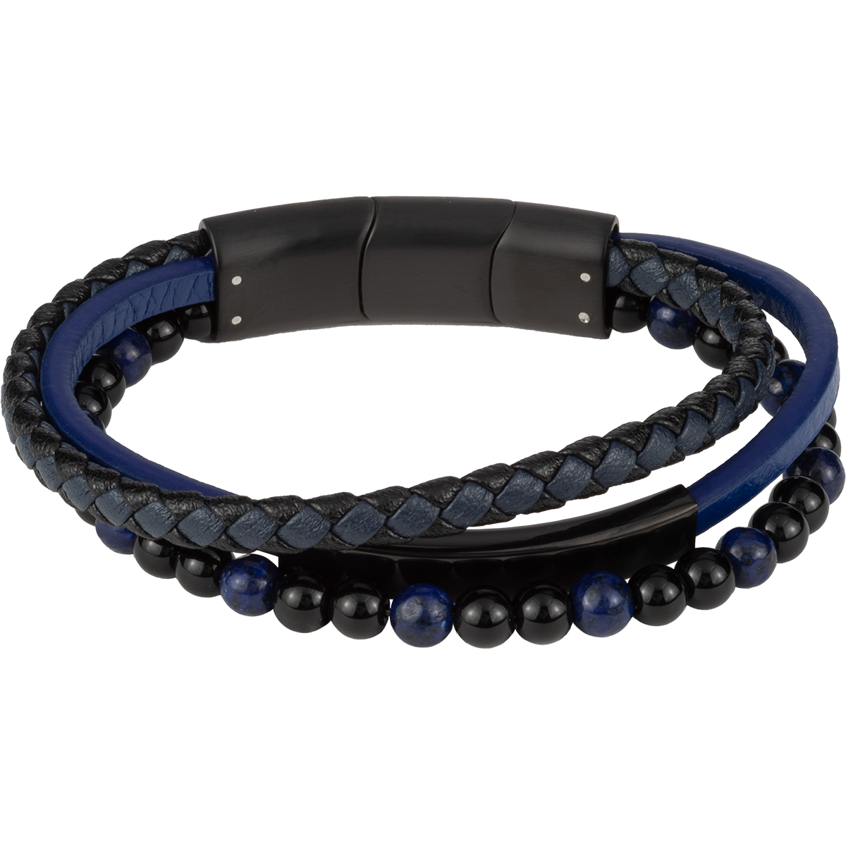 Lederarmband mit Onyx/Lapislazuli Perlen