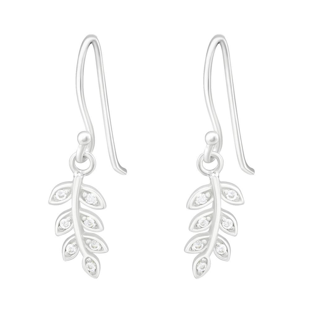 Silberne Ohrhaenger mit Kristallen im Blaetter-Design