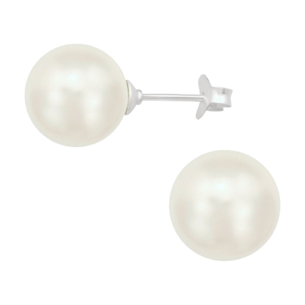 Silberne Doppelkugel Ohrringe mit 2 weißen Perlenimitat Kugeln (8 & 14 mm) – toller Front Back Ohrschmuck fuer jeden Anlass