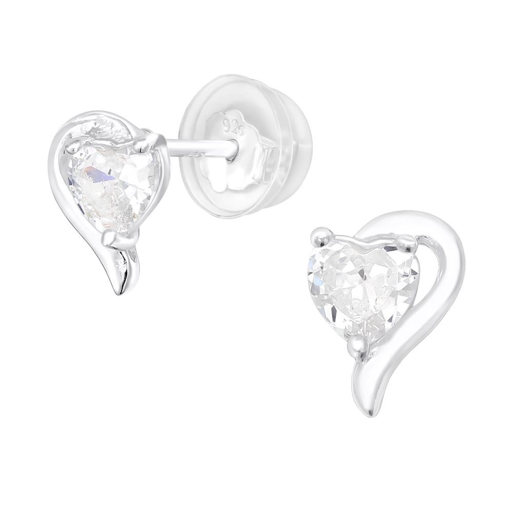 Echtsilber-Ohrstecker in Herzform mit strahlendem Kristall