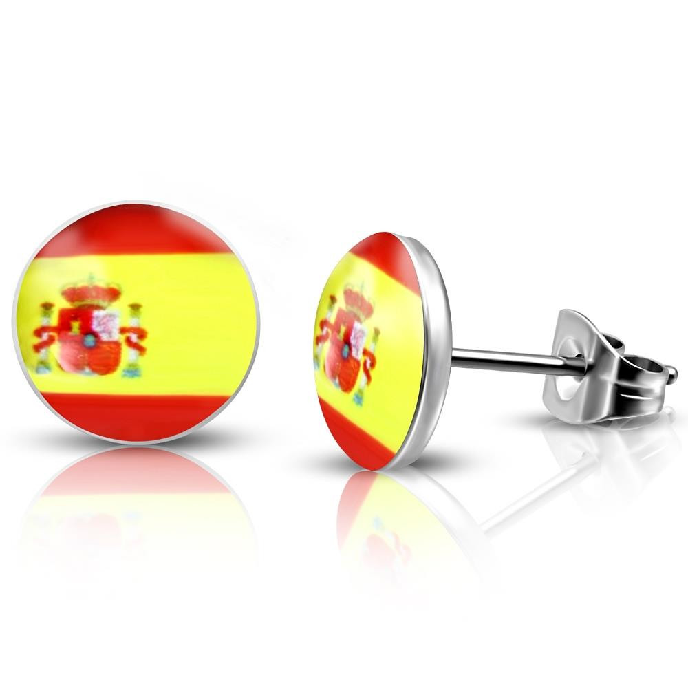 Silberne Ohrstecker mit spanischer Flagge – perfekt zum unterstuetzen deines Landes / deines Teams
