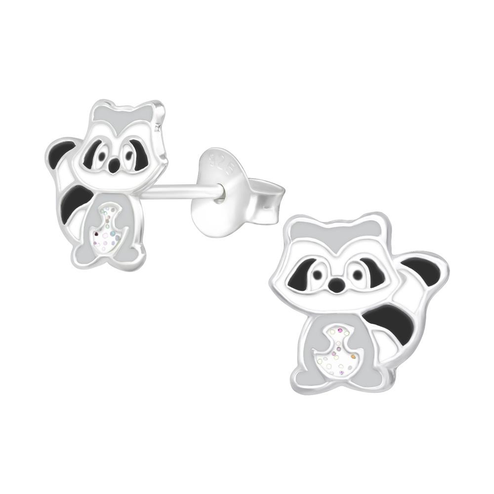 Kinder-Ohrstecker mit niedlichem Waschbaer-Motiv aus Echtsilber