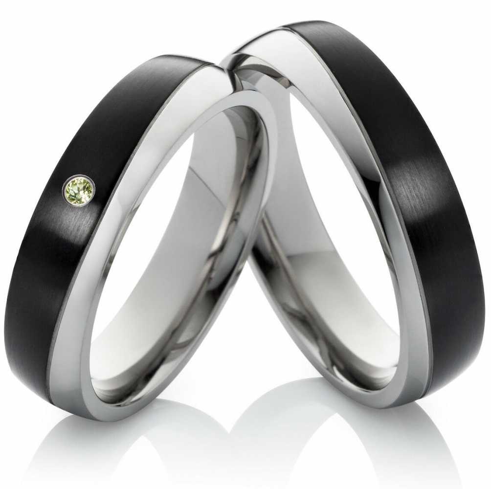 Stillvolle Edelstahlringe mit Gravur und Peridot Moderner Edelstahlringe teilbeschichteter Oberflaeche. Die Ringe sind sowohl laengsmattiert und auch hochglanzpoliert. In dem Innenbereich der Polierten Oberflaeche ist eine Lasergravur moeglich. Diese koennen Sie frei waehlen und auch eine der sieben Schriftarten auswaehlen. Der Text sollte ein Zeichen der Liebe und Verbundenheit sein. Die Ringe sind 6mm breit und der Damenring wird von einen funkelnden Peridot geziert. Wir wird auch ein Etui mitgesendet. Diese Ringe koennen als Partnerringe, Verlobungsringe, Freundschaftsringe oder aber auch als Eheringe getragen werden. Ringmodell: ES9 Marke: Rings-and-more Ringmaterial: Edelstahl Ringmaterial massiv: JA Ringbreite Dame: ca. 6mm Ringbreite Herr: ca. 6mm Steinbesatz im Damenring: Peridot Steinanzahl : 1 Steinform : rund Steingroesse: ca.1,5mm Oberflaeche: Mattiert und Poliert Oberflaeche innen: Poliert Innen: bombiert (abgerundet) Damenringgroessen: 50 bis 64mm (nur in 2er Schritten verfuegbar) Herrenringgroessen: 50 bis 64mm (nur in 2er Schritten verfuegbar) Lieferumfang: 1x Paar (1x Damenring und 1 x Herrenring) und Etui