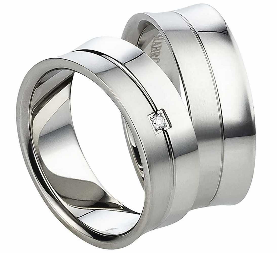 Erstklassig schoene gravierbare Partnerringe mit Diamanten jeweilss zur Haelfte sind diese Partnerringe auf der Ringaussenflaeche poliert und mattiert. Die Breite betraegt etwa 7,0 mm. Eine Gravur, die kostenfrei ist, kann auf der bombierten/ abgerundet sowie polierten Ringinnenflaeche ihren Platz finden. Dafuer stehen sieben Schriftarten und genau 30 Zeichen zur Verfuegung. Ein 0,015 W/SI grosser weisser und runder Diamant ist eingefasst in den Ring fuer die Dame. Der Herrenring ist ohne Stein. Gratis mitgeliefert wird ein schickes schwarzes Etui, zur Aufbewahrung der Edelstahlringe. Bei der Zusendung innerhalb von Deutschland kommen keinerlei zusaetzliche Kosten auf Sie zu. Ringmodell: AB1024-AB1003 Marke: Mabro Ringmaterial: Edelstahl Ringmaterial massiv: JA Ringbreite Dame: ca. 7,0 mm Ringbreite Herr: ca. 7,0 mm Steinbesatz im Damenring: Brillanten Steinform: rund >Steinanzahl: 1 Steingroesse: 0,015 W/SI Oberflaeche: mattiert und poliert Oberflaeche innen: poliert Innen: bombiert (abgerundet) Damenringgroessen: 50 bis 62mm (nur in 2er Schritten verfuegbar) Herrenringgroessen: 56 bis 70mm (nur in 2er Schritten verfuegbar) Lieferumfang: 1x Paar (1x Damenring und 1 x Herrenring) und gratis Etui