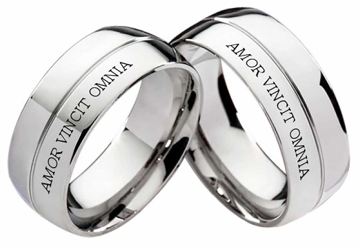 Edelstahlringe mit Gravur als Zeichen der Freundschaft Diese Polierte Partnerringe aus Edelstahl sind 8,0 mm breit und auf der Oberflaeche aussen, sowie innen poliert. Die Innenseite ist zusaetzlich abgerundet, sodass das Tragegefuehl sehr angenehm ist. Auf der Aussenflaeche ist Platz fuer eine Nachricht, als Zeichen der Freundschaft oder Liebe. Diese kostenlose Aussengravur kann ganz individuell formuliert werden, anhand von sieben verschieben Schriftarten. Die Oberflaeche aussen ist zusaetzlich mit einer Glanzrille geschmueckt. Im Lieferumfang enthalten ist ein schwarzes Etui, sowie der Versand innerhalb von Deutschland. Dieses Ring-Set kann als Verlobungsring oder auch als Freundschaftsring getragen werden. Ringmodell: PE303 Marke: Rings-and-More Ringmaterial: Edelstahl Ringmaterial massiv: JA Ringbreite Dame: ca. 8,0 mm Ringbreite Herr: ca. 8,0 mm Oberflaeche: poliert Oberflaeche innen: poliert Innen: bombiert (abgerundet) Damenringgroessen: 50 bis 72mm (nur in 2er Schritten verfuegbar) Herrenringgroessen: 50 bis 72mm (nur in 2er Schritten verfuegbar) Lieferumfang: 1 Paar (1x Damenring und 1 x Herrenring) mit gratis Etui