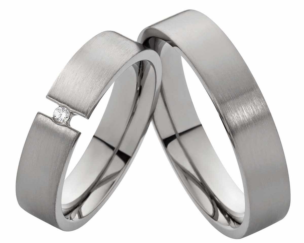 Elegante Titanringe mit Zirkonia aus dem Hause Rings-and-More Wenn man eher schlichte elegante Ringe aus Titan zur Verlobung oder als Zeichen der Freundschaft tragen moechten, dann sind diese 5,0 mm breiten Partnerringe aus Titan genau die richtige Wahl. Die Oberflaeche ist mattiert und die Innenseite, die gratis graviert werden kann, ist poliert. In den Ring fuer die Dame ist ein 2,0 mm grosser weisser runder Zirkonia eingespannt, der ganz zauberhaft funkelt. Die Lasergravur kann jeder ganz individuell nach seinen Vorstellungen formulieren. Dafuer stehen 30 Zeichen und sieben Schriftarten zur Verfuegung. Damit die Titanringe gut aufbewahrt werden koennen, wird ein edles gratis Etui mitgeliefert. Die Bestellung ist innerhalb von ganz Deutschland versandkostenfrei. Ringmodell: PT159 Marke: Rings-and-More Ringmaterial: Titan Ringbreite Dame: ca. 5mm Ringbreite Herr: ;ca. 5mm Steinbesatz im Damenring: Zirkonia Steingroesse: ca.2 mm Oberflaeche: mattiert Damenringgroessen: 50 bis 62 Herrenringgroessen: 56 bis 68 Lieferumfang: 1 Paar (1x Damenring und 1 x Herrenring)