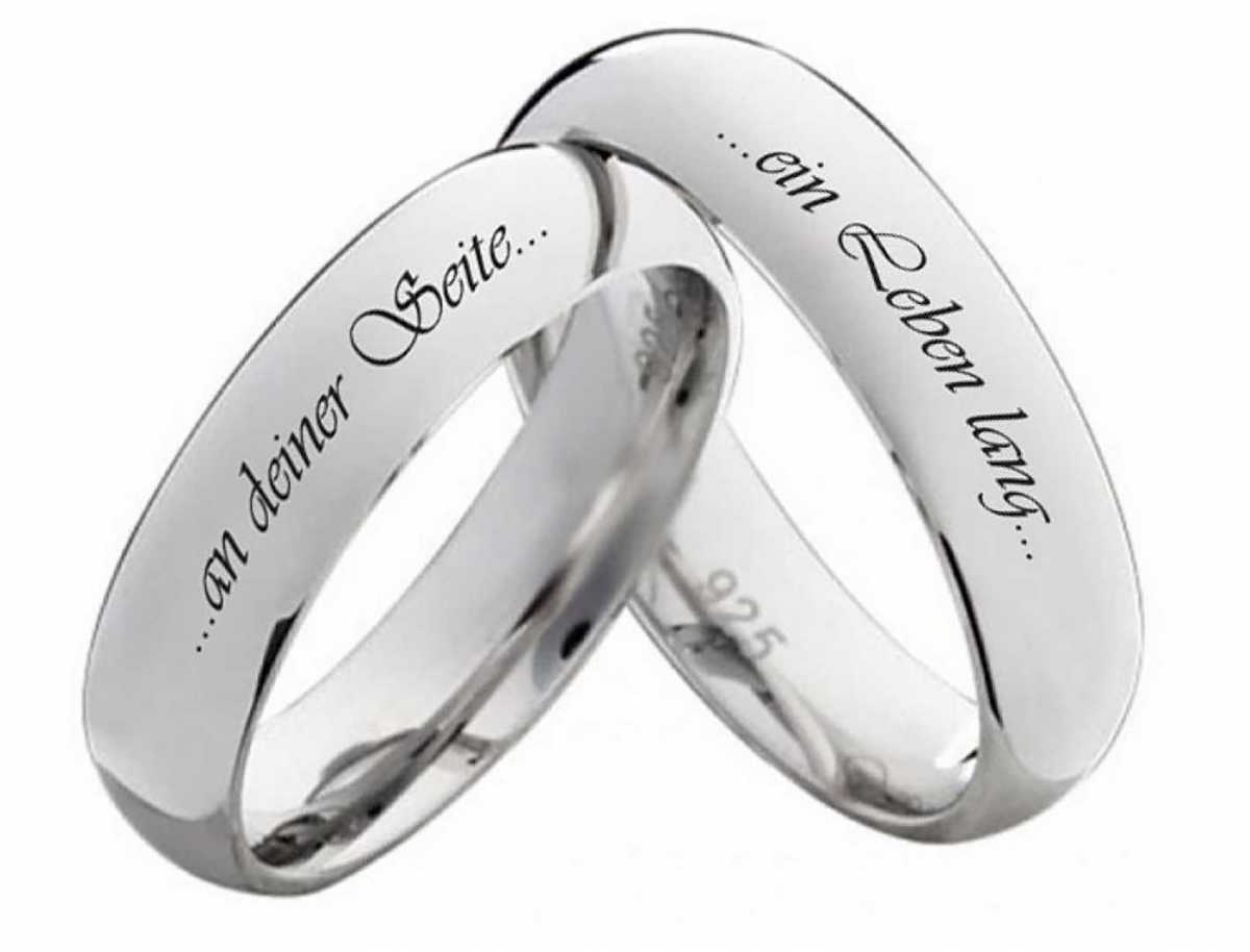 Schlichte elegante Silberringe mit Gravur aussen Wenn man mit schlichter Eleganz auffallen moechte, dann sind diese Partnerringe aus 925 Sterling Silber genau richtig. Der Damen- und der Herrenring ist 5,5mm breit und innen als auch aussen poliert. Um den Partnerringen eine persoenliche Note zu geben, kann man sie auf der Oberflaeche aussen ganz nach den eigenen Wuenschen und Vorstellungen gratis gravieren lassen. Dafuer hat man sieben Schriftarten zur Verfuegung. Die Lieferung erfolgt mit einem gratis Etui. Die Versandkosten sind innerhalb von Deutschland natuerlich im Angebot enthalten. Die Ringe koennen auch als Verlobungsringe, Trauringe oder Freundschaftsringe getragen werden. Ringmodell: PS808 Marke: Rings-and-More Ringmaterial : Silber 925/- Ringbreite Dame: ca. 5,5mm Ringbreite Herr: ca. 5,5mm Oberflaeche: poliert Damenringgroessen: 50 bis 70 Herrenringgroessen: 50 bis 70 Lieferumfang : 1 Paar (1x Damenring und 1 x Herrenring) und gratis Etui
