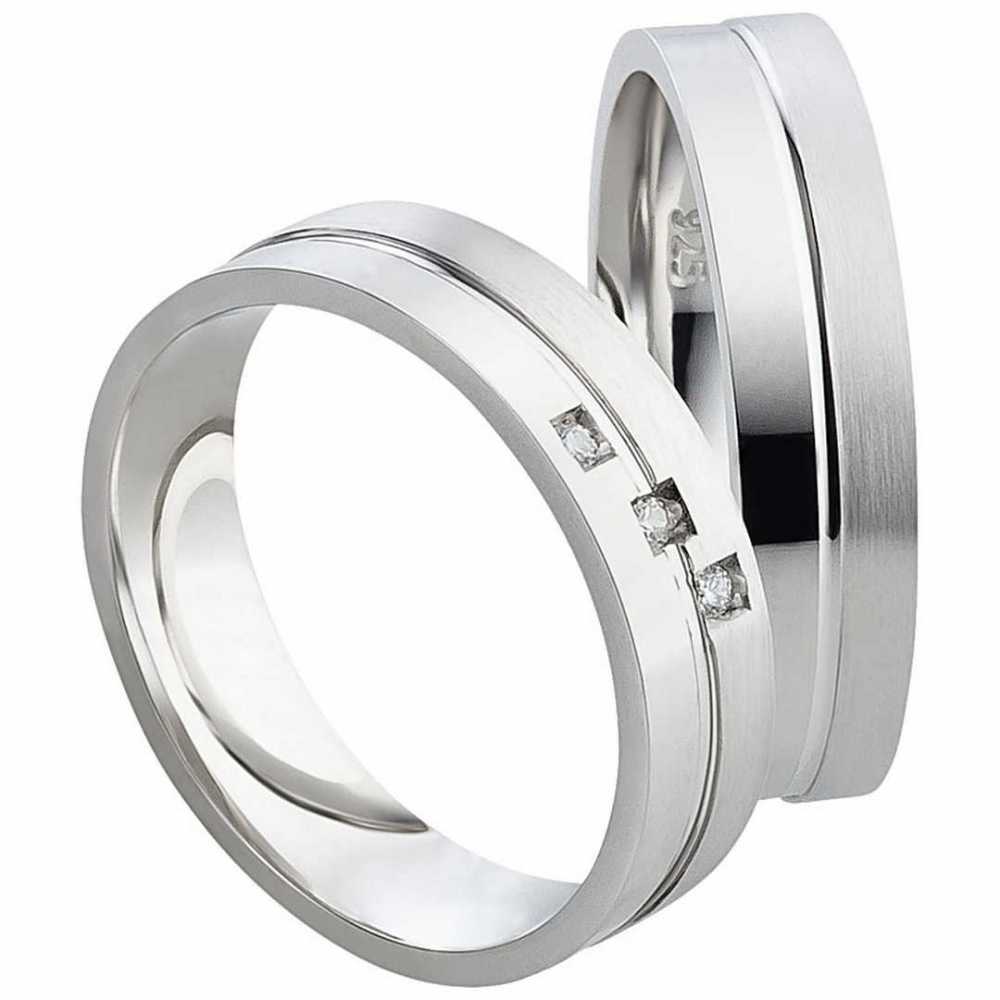 Silberringe mit Glanzrille und 3 Zirkonias Diese Partnerringe sind 5,0 mm breit und auf der Oberflaeche aussen mattiert und poliert. Durch die hochwertige Glanzrille auf der Oberflaeche bekommen diese Silberringe einen ganz besonderen Charme. Auf dem Damenring funkeln zusaetzlich drei weisse Zirkonias mit einer Groesse von 2,0 mm. Dieses Ring-Set ist aus 925er Sterling Silber. Man kann diese Ringe sowohl als Freundschafts- als auch als Eheringe tragen. Durch die persoenliche gratis Gravur auf der Innenseite werden die Silberringe ganz individuell auf den Traeger abgestimmt. Man kann anhand von sieben Schriftarten eine Botschaft formulieren, die ganz speziell auf den Freund oder die Freundin abgestimmt ist. Diese Silberringe werden in einer gratis Box geliefert und der Versand innerhalb von Deutschland ist natuerlich im Angebot enthalten. Partnerringe Silber Ringe mit Zirkonias mit gratis Gravur. Ringmodell: SR022-SR023 Marke: Mabro Ringmaterial : Silber 925/-rhodiniert Ringbreite Dame: ca. 5mm Ringbreite Herr: ca. 5mm Steinbesatz im Damenring : 3x Zirkonia Steingroesse: ca.2 mm Oberflaeche: mattiert und poliert Damenringgroessen: 50 bis 62 Herrenringgroessen: 54 bis 70 Lieferumfang : 1 Paar (1x Damenring und 1 x Herrenring) und gratis Etui