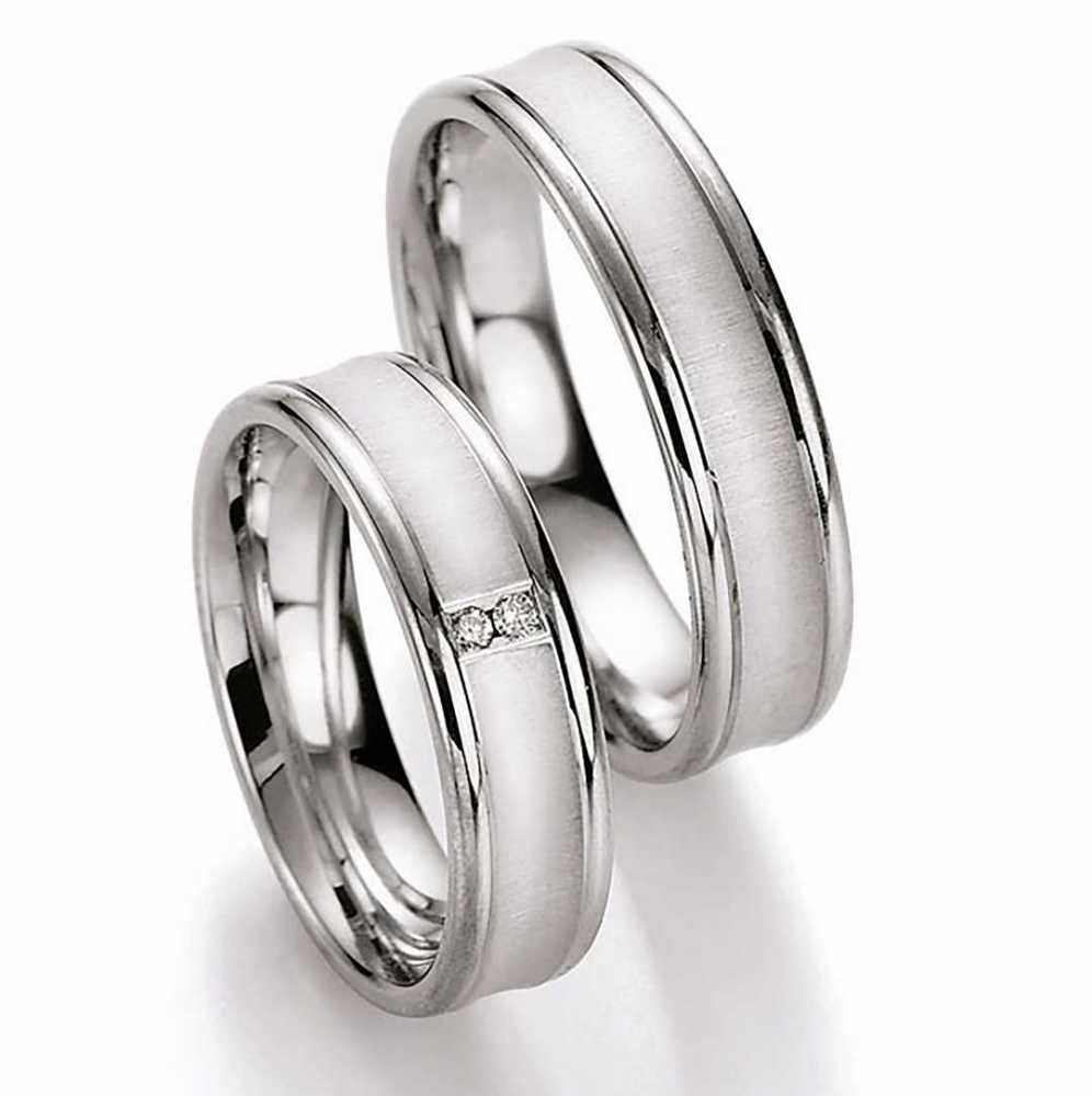 Ringmodell: 10170-10180 Kollektion: White Style Silver Inspiration Brilliant Marke: Collection Ruesch Ringmaterial : 925-/ Silber Ringbreite Dame: ca. 5mm Ringbreite Herr: ca. 5mm Steinbesatz im Damenring : 2x Diamanten Steingroesse: 0,01ct pro Stein Oberflaeche: sattiniert und poliert Damenringgroessen: 50 bis 62 Herrenringgroessen: 56 bis 70 Lieferumfang : 1 Paar (1x Damenring und 1 x Herrenring) Â
