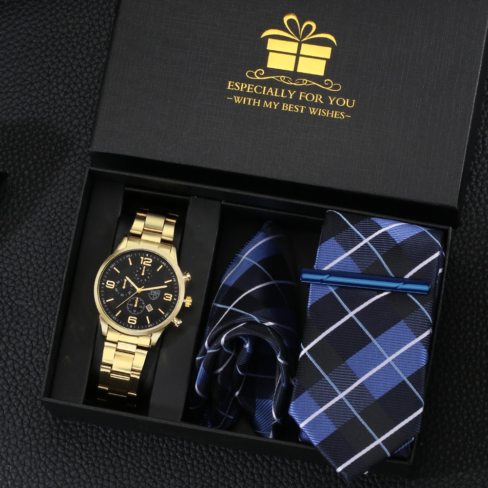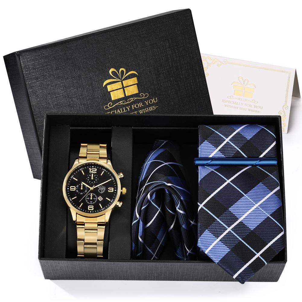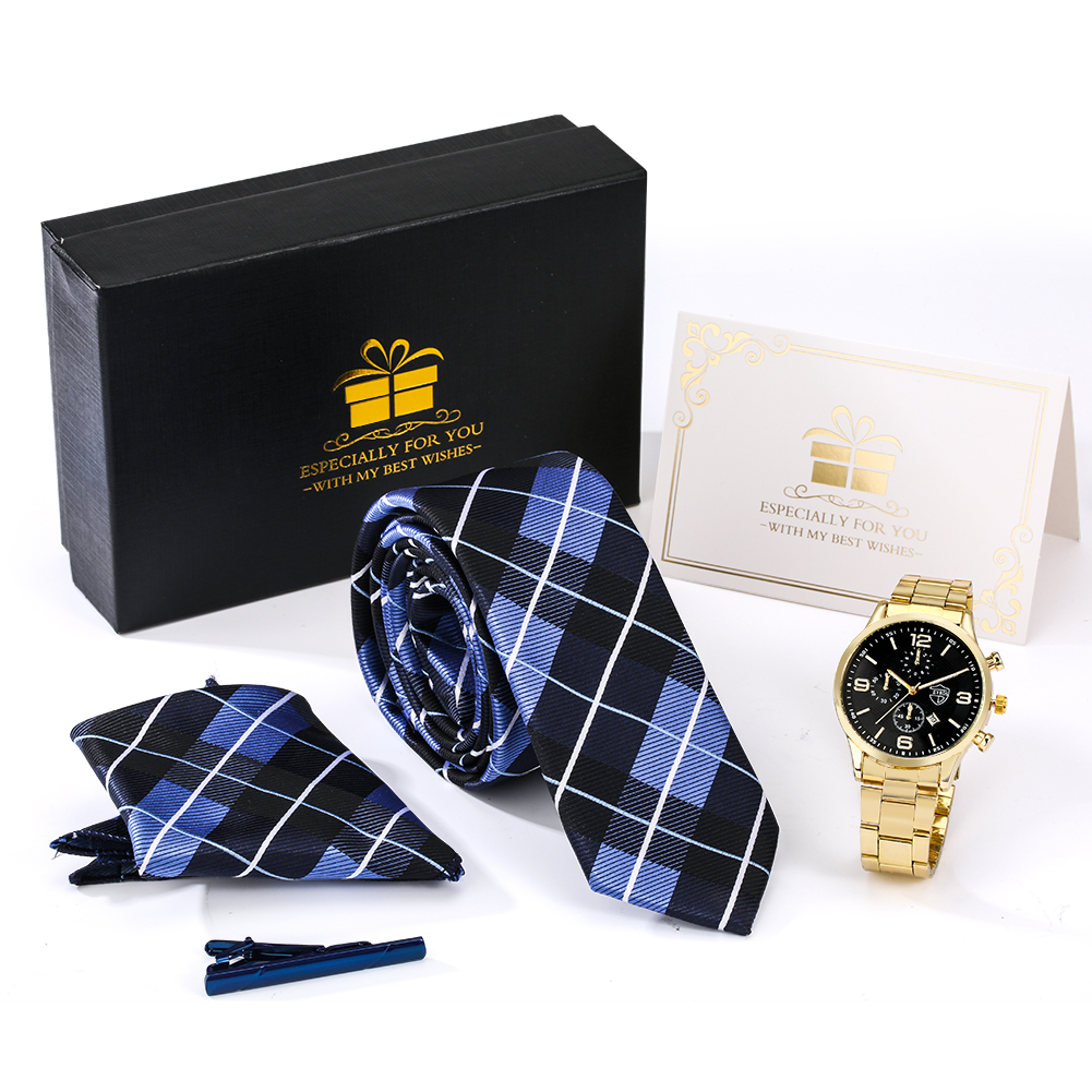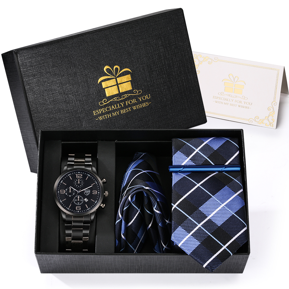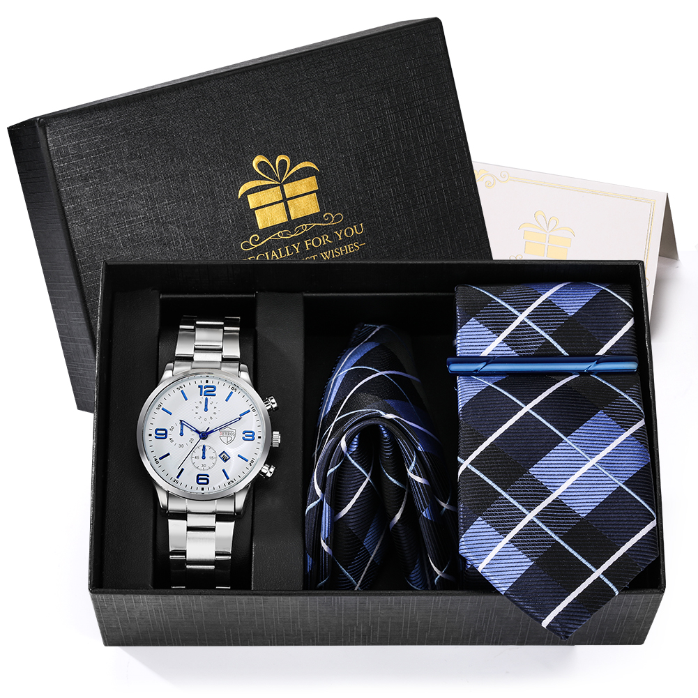 Uhren-Geschenk-Set-Uhr-Krawatte-Einstecktuch #01