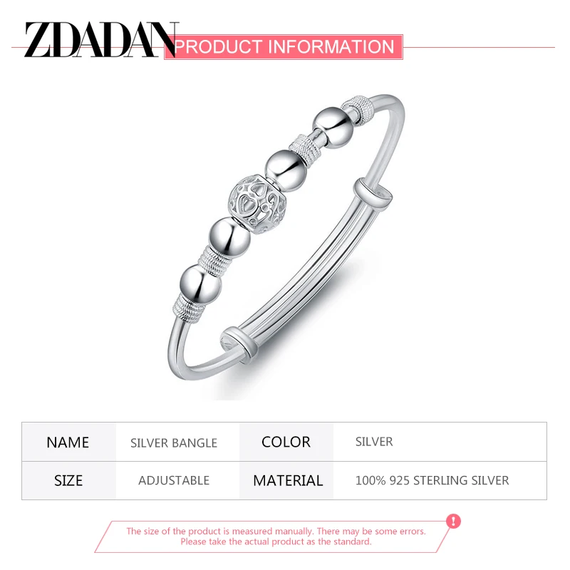 ZDADAN 925 Sterling Silber Glocke Einstellbare Armband Armreif Für Frauen Mode Schmuck