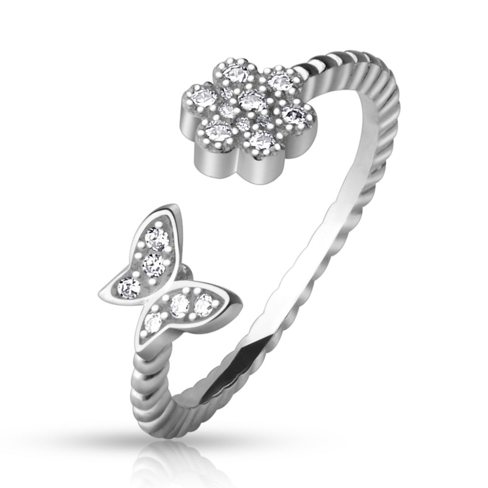 Premium 925 Silber Schmetterling & Blume Zehenring groeßenverstellbar fuer Damen & Frauen – kann sowohl als Zehring als auch Mittelring / Fingerring getragen werden